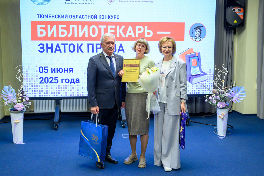 5 июня 2025 года в Тюменской областной научной библиотеке им. Д.И. Менделеева были подведены итоги Тюменского областного конкурса «Библиотекарь – знаток права». Победителям и призёрам вручили дипломы и подарки. Главные из них - кофеварка, умная колонка и вафельница. Кроме того, 10 библиотекарей стали призёрами в специальных номинациях.