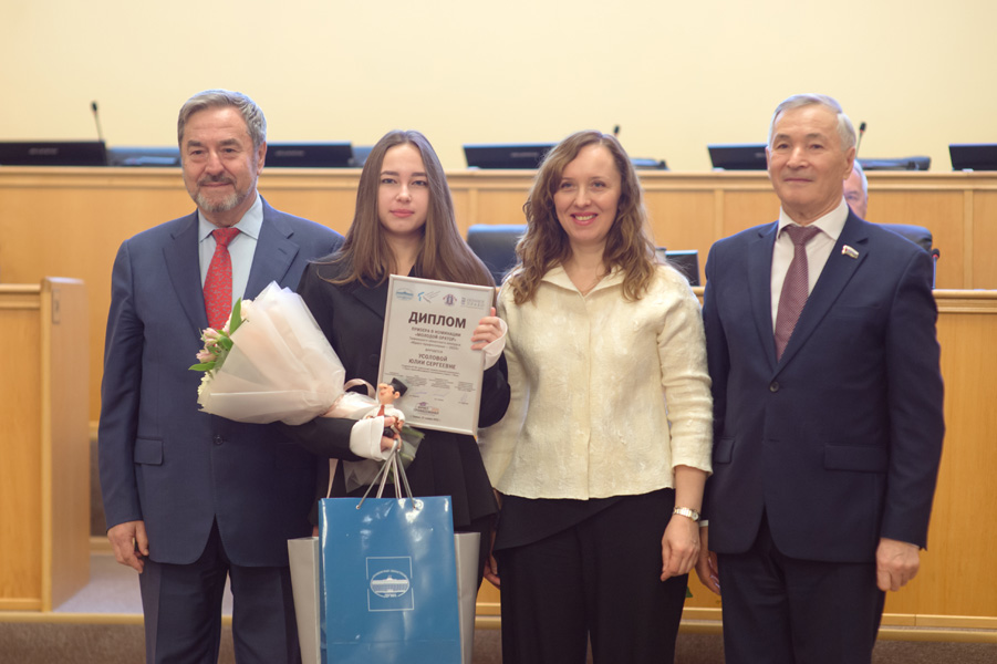 За лучшее устное выступление награждена Юлия Усолова (БУ ВО «Сургутский государственный университет», г. Сургут). Она получила диплом «Молодой оратор» и приз от Тюменской областной Думы.